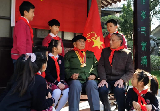 3月22日上午,通州区实验小学的红领巾寻访员们在周春国副校长和大队辅导员许魏老师的带领下,怀着一颗崇敬的心,来到抗战老兵曹邦裕家中,聆听曹爷爷讲述当年那些感人的战斗故事,追寻峥嵘岁月,传承红色基因。