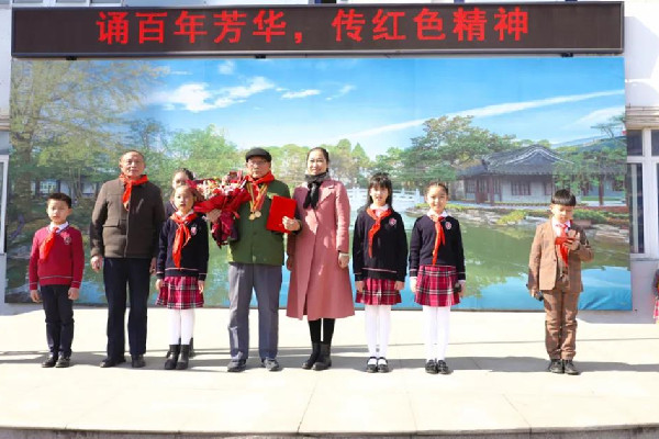 应红领巾寻访员们的邀请,曹爷爷来到实验小学,为全校师生们讲述他的战斗故事。