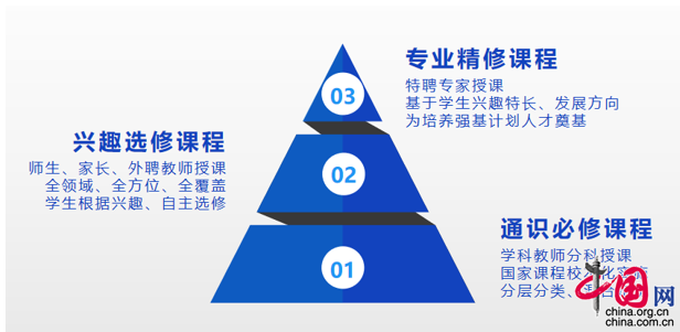 课程是学校的根本所在,也是学校发展的基石。湖畔中学围绕“课程、学程、评价”三个维度进行改革,确定了“混合走班”教学改革方案。基于学校育人目标,以“通识奠基,个性发展”为课程理念,采用“分层分类,混合走班”的方式逐步构建适合湖畔中学发展的特色课程体系。旨在帮助孩子在完成国家规定课程的基础上,既可以全面发展自己的兴趣爱好,也可以精修专业努力成为杰出人才。