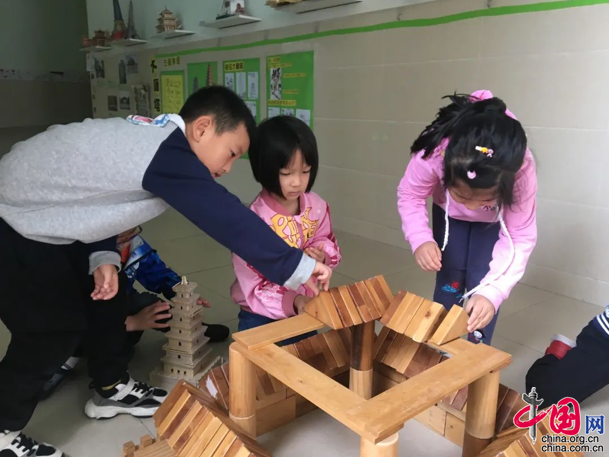 “以后又不当木匠,不当建筑工人,修房子有什么用?”面对这样的质疑,幼儿园如此解惑:“建构游戏被称为奥数游戏、物理游戏,有它独特的教育价值。孩子们在搭建中学习了数学认知中关于点数、形状、空间、倍数、分类、排序、比较、测量、估算、对称;物理中关于力学、平衡的知识。同时,在搬弄积木的过程中孩子大肌肉、小肌肉动作发展得到锻炼、观察能力得到提升,伙伴之间协商合作分工的能力也得到了发展,这也是在进行STEM探究活动,是孩子们深度学习的具体表现。孩子们通过不断地调整、探索搭建出了‘大雁塔’‘天安门’‘中国馆’‘战斗机’‘游轮’‘长颈鹿’等形象逼真的作品。”