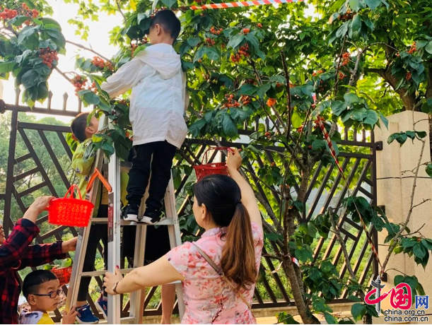 假如冬天走进城北幼儿园,你会发现果园里的橘子被一个个白色袋子装起来了,并且每个橘子上都有1-10不同的数字标识。据了解,这是大班的孩子们在给橘子套袋时,为了数清到底需要多少袋子,而用自己的方法数出橘子的数量,然后买套袋,请家长教自己为橘子套袋。幼儿园相关负责人表示,幼儿园里的“果园”不是农民的“果园”,农民的果园在乎的是它到底创造了多少经济价值,而城北幼儿园果园的价值则是看它到底创造了多少教育价值。幼儿园一直坚持“处处是美景,处处是教育”的理念,当把环境资源转化为教育资源、课程资源的时候,环境是孩子第三任老师的作用也就显现了。