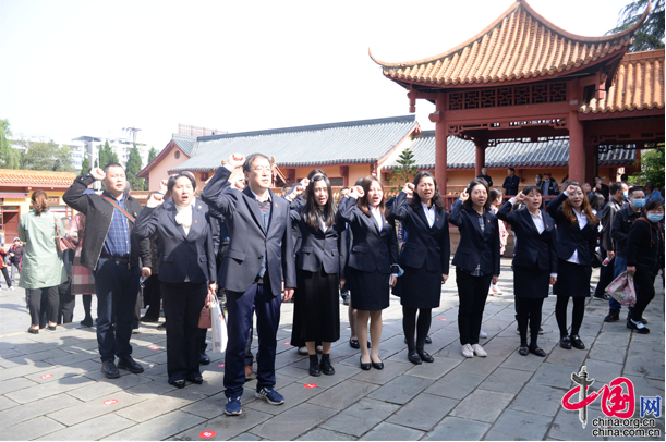 “我志愿加入中国共产党,拥护党的纲领,遵守党的章程……”在黄继光扑向敌人枪口的塑像下,党员们举起右拳,重温入党誓词。大家纷纷表示,在英雄的雕像下宣誓,内心很震撼,这是一次深刻的思想洗礼和党性锻炼。