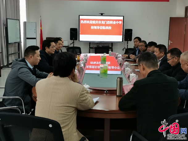 中国网4月19日讯(钟传亮) 加强校级交流合作,共谋职业教育发展。4月19日,重庆市南岸区人民政府考察代表团、重庆市龙门浩职业中学校校长、党委书记钟代文及学校班子成员一行赴成都汽车职业技术学校学习交流,汽车职校校长韦生键及学校相关负责人陪同交流考察。