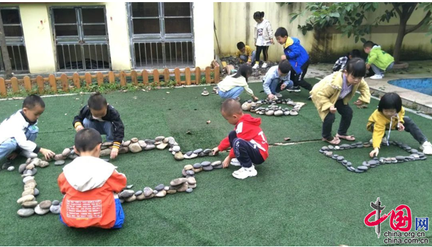 沙、水、树枝、狗尾巴草、蔬菜等都可以成为孩子们玩游戏的素材;木头、鹅卵石、墙壁,到处都是“画布”,承载着孩子们的想象力;种植、沙水游戏、养殖小动物、户外混体活动……每种游戏都能锻炼孩子们的能力。