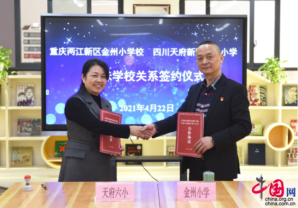 中国网4月25日讯(刘杨)为贯彻落实《重庆两江新区教育局—四川天府新区成都管委会社区治理和社事局推动成渝地区双城经济圈建设共同打造教育高地合作协议》《天府新区—两江新区教育改革协同试验区“成渝协同”重大教育改革试验项目实施方案》和《两江新区—天府新区中小学协同发展共同体实施方案》文件精神和有关要求,4月22日,重庆两江新区金州小学与四川天府新区第六小学本着“优势互补,资源共享,互惠双赢,共同发展”的原则,成功拉开两校协同发展的序幕,在天府六小签署了合作发展协议,构建协同发展共同体,建立长期、紧密的合作关系,推动教育资源共建共享。