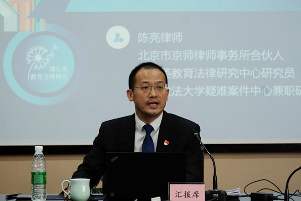 2021年3月1日,教育部颁布的《中小学教育惩戒规则(试行)》正式实施以来,陈亮律师多次赴清华附中丰台学校、海淀外国语实验学校、芳草地国际学校等学校开展《规则》相关专题讲座,以老师们在教育教学中遇到的常见问题入手,引出全社会密切关注的热点——教育惩戒;通过创设教育教学过程中可能出现的场景,与老师们进行互动问答,以此提升教师在面对真实情景时对《规则》的运用和把握能力。老师们通过系统化《规则》学习,真正做到将《规则》与智慧内化于心,外化于行的良好效果,进而更好地帮助学生发现问题、解决问题,把握好教育惩戒尺度,激励学生健康成长,达到真正教育的目的。