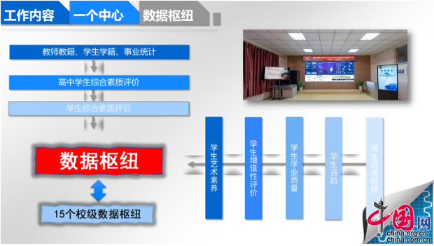 “减少孤岛,增加融通;减轻负担,增强效能;减弱人力,增值应用的‘三减三增’是智能治理的方向”。武侯区人民政府教育督导室负责人林迪介绍,“智慧大脑”的建设目标是建设成为区域教育信息全覆盖,具有高度智能化功能的大数据融合应用平台。将武侯区教育局各部门教育信息化系统的数据进行集群采集和存储,进行结构化、可视化呈现,构建成大数据融合平台,强化数据的智能分析、动态监测,实现对武侯教育异常情况的智能预警、关键问题的智慧决策、重大事件的协同处置,使之成为武侯教育的服务中心、治理中心和应急中心,做到可预警、可决策、可上报、可指挥。