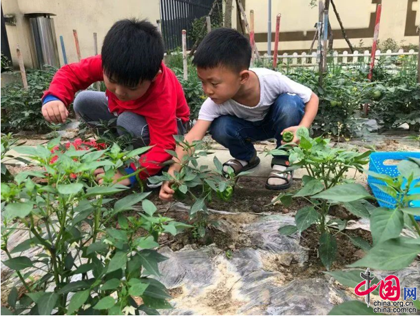 在种植活动中,孩子们自己种菜,给菜苗浇水,每天都会到菜园观察自己种的蔬菜有没有长高,长多大了。每到蔬菜水果丰收的季节,就是孩子们最开心的时刻——“橘子树好高啊,我们怎么才能把它们摘下来呢?”“胡萝卜是长在地里的,和水果不一样。蔬菜都长在地里吗?”“幼儿园的橘子比外面的爷爷奶奶卖的橘子还甜咧!”……孩子们自己想办法摘下酸甜可口的水果、采收各式各样的蔬菜,与同伴分享收获的喜悦。同时,他们还勇敢地带着种植园的蔬菜出去义卖,义卖得来的钱换成大家都喜欢的小玩具,切身感受到以自己的劳动换来成果的满足。