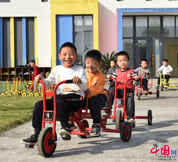 在户外大混龄游戏中,孩子们骑着最喜欢的三轮车,像一个个小司机:“快来!我载你去玩呀!”期间,他们个个遵守交通规则,因为知道不遵守交通规则就会出“车祸”。“在体育游戏中孩子们的体能得到锻炼,养成了规则意识,提高了自信心和自我服务能力。”老师介绍,每次混龄游戏结束之后,孩子们会主动加入收拾大军,简直就是老师们的得力小助手。