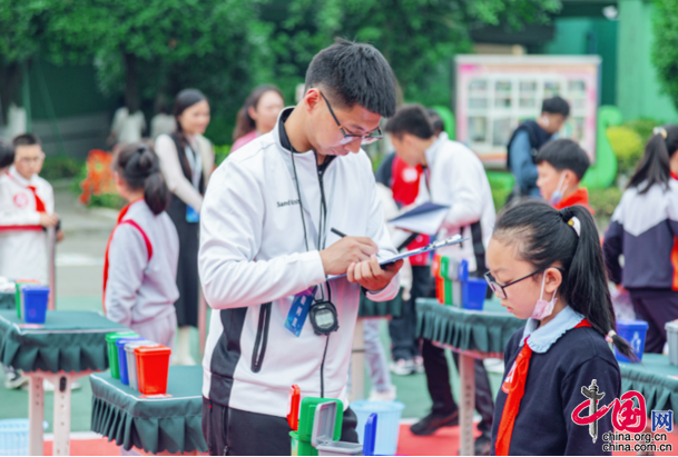 “能卖钱的蓝桶桶,易腐烂的绿桶桶,有毒有害红桶桶,没人要的灰桶桶。”垃圾分类比赛中,正专注地将标记垃圾名字的纸片投入正确的垃圾桶中。