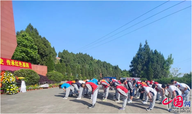 阆中是第二次国内革命战争时期川陕苏区的重要组成部分。红军在这片热土抛头颅、洒热血,用生命铸就了今天的岁月静好。站在红军纪念园中,同学们听着先烈们的英雄故事,重温那段峥嵘岁月,感受长征精神。期间,同学们在纪念碑前庄严肃立、鞠躬默哀、缅怀英魂,齐唱《我和我的祖国》,并敬献自己折的千纸鹤表达敬意;入团积极分子在碑前面向团旗宣誓:“愿循着先辈的脚步为共产主义事业而奋斗!”
