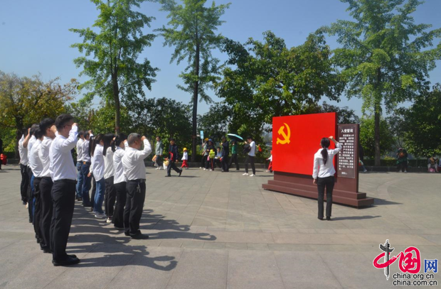 在巍然屹立的川陕苏区红军将士英名纪念碑前,全体党员面向党旗,庄严宣誓,铿锵有力的誓词震撼着在场的每一位党员,牢固了党员全心全意为人民服务、为党和人民的事业奋斗终生的信念。