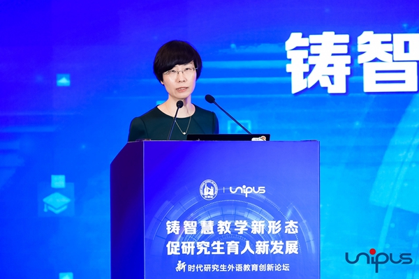 外语教学与研究出版社副总编辑常小玲代表主办方致辞,她总结了“四个力”以表达对本次创新论坛的理解和期待。常小玲说,第一是“动力”,国家发展、教育改革和人才需求是我们不断完善研究生外语教育的动力,也是外研社不断创新研究生外语教材的动力;其次是“能力”,因为研究生阶段要培养的是创新型、实践型人才,特别是关键领域掌握核心技术的人才,所以特别需要他们能够有效利用外语真正学习和交流,去钻研和探究,去思考和创造;再次是“合力”,常小玲表示,越是新内容、新形态,越需要和老师们一起努力、共同探索,在使用中不断发掘新的方法,补充新的元素。最后是“实力”,《新探索研究生英语教程》将成为外研社教材发展历史上的又一个里程碑,由外研在线牵头策划、全面设计的这套研究生英语数字教材,将成为外语教材发展中的又一次突破。