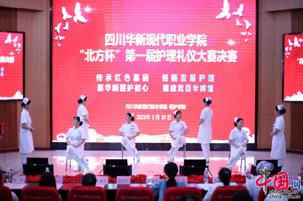 中国网5月12日讯(钟传亮)“传承红色基因,创新发展护理。”为加强护生专业知识,培养护生良好的礼仪意识,5月10日,四川华新现代职业学院医护学院举办“北方杯”第一届护理礼仪大赛决赛暨5.12国际护士节纪念活动。中国五冶集团有限公司医院党委副书记王洪彬,中国五冶集团有限公司医院护理部主任李艳,四川赫尔森康复医院护理部主任马雪,学院党委书记李建川,副院长刘斌、何红,学院教务处处长翁艳、医护学院院长伍小飞、书记任燕及学院其它职能部门和二级学院的领导老师们出席本次活动。