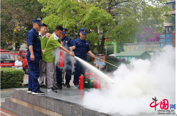 此外,玉林街道消防站的工作人员模拟了浓烟四起的火灾现场,并演示了灭火的过程。全体食堂工作人员、物管工人、保安和部分同学亲身体验了使用灭火器灭火的过程。在工作人员的引导下,同学们还参观了消防器材展览,对如何正确使用消防设施设备有了更全面的认识。