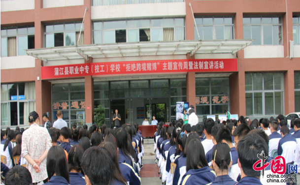 中国网5月12日讯(王宋玲)为切实提高学生拒绝跨境赌博、电信诈骗和校园欺凌的意识,5月12日,四川省蒲江县职业中专(技工)学校邀请蒲江县公安局户政大队副大队长何一、交警大队民警陈柯、鹤山镇派出所社区民警赖永强,开展了“拒绝跨境赌博”暨2021年法治进校园主题宣讲活动,学校全体师生参与活动。