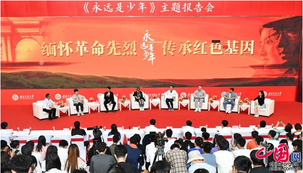 中国网5月17日讯 (王李科)由著名导演冯小宁担任导演和编剧的红色青春电影《永远是少年》,已于5月15日在全国院线上映。正值西南交通大学125周年校庆之日,5月16日下午,冯小宁携电影主创团队走进西南交通大学,与该校青年学子面对面交流。据了解,该电影主角之一的冯健行,原型源自红军英烈、西南交通大学土木工程专业1927届校友冯亮功。巧合的是,冯亮功正是冯小宁导演的爷爷。活动现场,冯小宁也被西南交大人亲切地称为“校亲”。