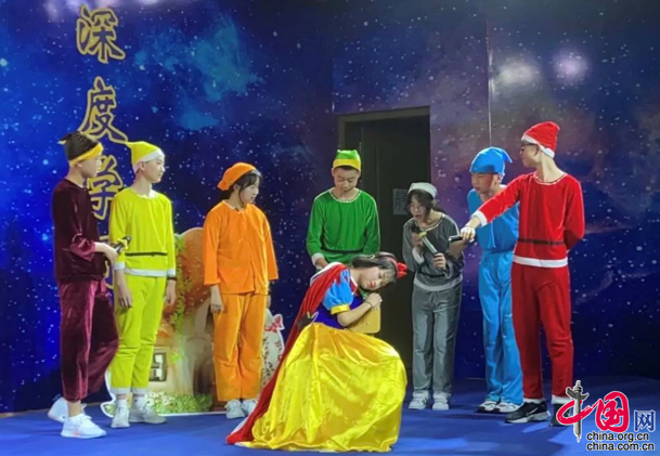 中国网5月21日讯(辜丽茜)近日,成都市泡桐树中学2022学部八年级举行了以“演绎英语经典,感受戏剧魅力”为主题的英语戏剧节活动。活动以教材戏剧单元为载体,同学们在英语老师的指导下,通过改编剧本、分析台词、角色理解等学习英语戏剧表演。