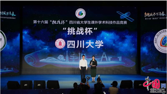 中国网5月25日讯(王李科)5月24日,由共青团四川省委、省委组织部、省科协、教育厅、省社科院、科技厅、人力资源社会保障厅和省学联联合主办的第十六届“挑战杯”四川省大学生课外学术科技作品竞赛终审决赛(以下简称“大赛”)在四川师范大学成龙校区落幕。经过激烈角逐,四川大学以团体总分第一的成绩荣获“挑战杯”,电子科技大学、四川师范大学、四川农业大学、成都中医药大学、成都大学、西南交通大学、西南科技大学等七所高校荣获“优胜杯”。本届大赛,共吸引全省91所高校、近10万名青年学生参与,网报参赛作品13000余件。经过网络初评、线下问辩、专家讨论,评选出一等奖作品80件、二等奖作品160件、三等奖作品560件,并从一等奖作品中遴选50件作品推报国赛。