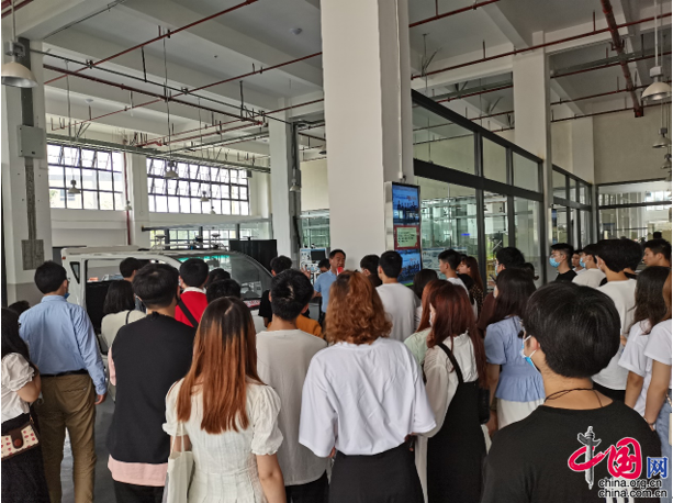 当天下午,与会嘉宾们走进成都市创新创业教育示范校—成都汽车职业技术学校,参观考察了智能制造机器人+实训室,听取了该校校长韦生键关于新工科教育教学融合应用情况、工业生产、工业服务、人才培训、实习实训等业务板块构建产教融合全生态服务体系的介绍。