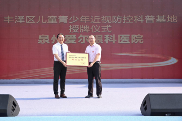 近年来,泉州爱尔眼科医院一直致力于儿童青少年近视防控公益事业,定期为师生进行视力筛查,并走进校园举办了逾百场爱眼护眼科普讲座。此次,丰泽区教育局为泉州爱尔眼科医院授予“丰泽区儿童青少年近视防控科普基地”牌匾。