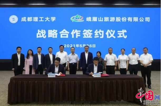 中国网5月28日讯(王李科)记者5月28日从成都理工大学了解到,成都理工大学与峨眉山旅游股份有限公司签订战略合作协议,并举行了“成都理工大学青少年地学科普研学基地”授牌仪式,共同打造峨眉山地学研学品牌。