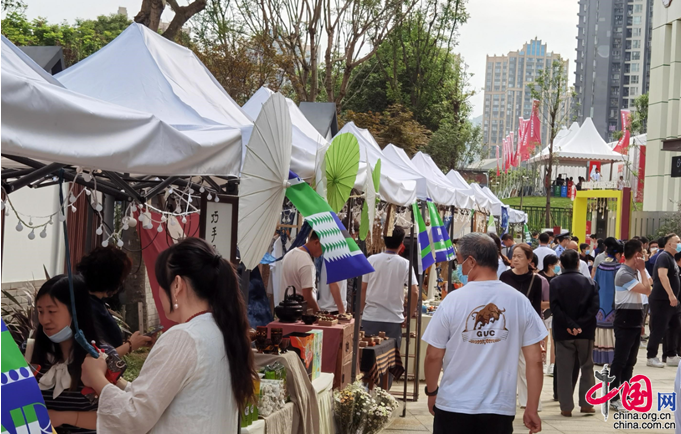 同时,汇集了众多精品的文创生活集市也大受欢迎,手工艺品、饰品、茶具、花艺、乐器、陶制品等多个门类、琳琅满目的文创产品吸引了众多观众驻足欣赏、采买。