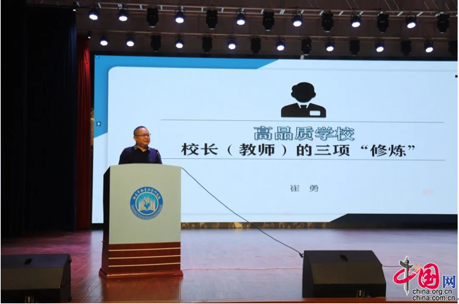 期间,四川省教育科学研究院研究员、《教育科学论坛》与教育志鉴编辑部主任、《教育科学论坛》执行主编崔勇以“高品质学校校长(教师)的三项‘修炼’”为题进行分享。他认为,高品质是新时代学校发展的旗帜与道路,是“国家概念”;高品质=高品位x高质量;品位是顶天立地、符合规律;质量指低负高效、全面发展。针对校长的办学理念与能力、教师教书育人的水平、学生全面发展的问题,崔勇提出了三项修炼:愿景修炼——目标、学术修炼——提升学术修养、心智修炼——改变心智模式。成都市教育科学研究院高中研究所袁文所长作《明势 知法 有道——关于高效课堂的思考》专题报告。她认为,高效课堂有四个衡量标准:效益、效果、效率、效能;需要用及时反馈、纠错、跟进的评价方式来保障。