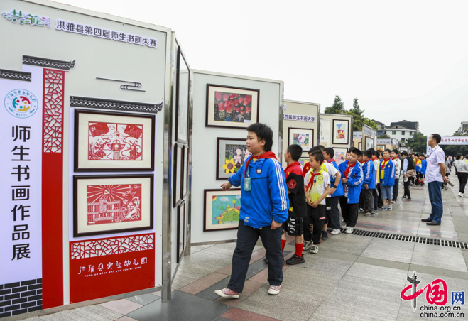 在眉山市第四届师生书画大赛优秀作品展暨艺术实践工作坊展示活动中,洪雅中学、实验中学、实验小学、洪雅一小、致远学校、县实验幼儿园、第二幼儿园、第三幼儿园等校的多件书法、美术、摄影优秀作品入选,并在眉山市会展中心及东坡区齐通小学展出。实验小学《民间玩具工作坊》集展、玩、做、购于一体,受到观展领导及师生的一致好评。期间,实验小学学生邓可涵、实验中学学生杨睿祺、致远学校教师彭素容、学生史煜桓参加了现场书画大赛。此外,洪雅县实验小学学生朱卓宁的美术作品《猫和老鼠》和洪雅县实验中学学生曹沣洋的自制玩具《七品芝麻官》入选中国美协少儿美术艺委会主办的首届全国少儿陶艺及塑作展。
