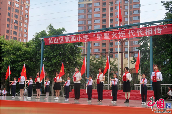 中国网5月31日讯 5月28日,眉山市彭山区第四小学在操场上举行了“星星火炬,代代相传”新队员入队仪式。