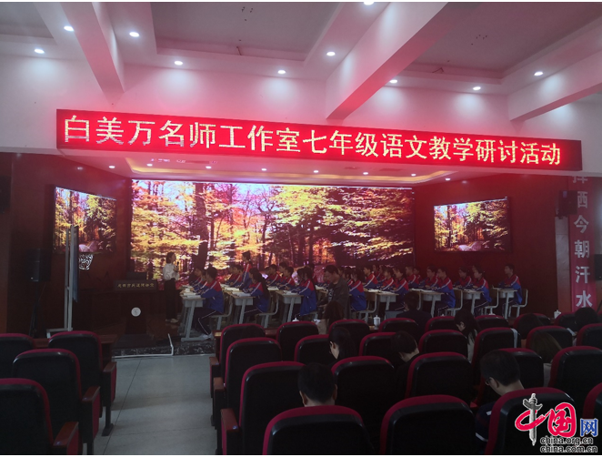 中国网5月31日讯(钟传亮)5月27日,白美万名师工作室教学研讨活动在成都市青白江区城厢学校举行,城厢学校校长刘泳、副校长李兴勇,青白江区初中语文教研员张锡惠老师,四川省特级教师白美万老师,以及全区的七年级语文教师参加本次活动。
