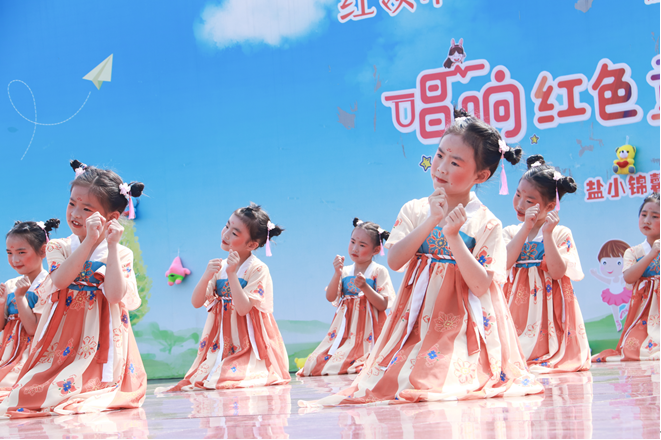 中华文明,博大精深,长江长城,万里河山。传统文化,源远流长,四书五经,诸子百家。孩子们通过演绎《中华孝道》、《三字经》《梅兰竹菊》带大家感受传统文化的魅力,坚守着中华儿女不变的初心。
