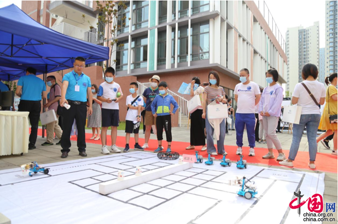 活动现场,学校精心设立了集中展示区域,智能机器人、书法、3D打印等具有特色的课程,并进行了现场讲解和展示,让更多人能亲身感受湖畔路中学的教学魅力。在参观智能机器人时,操作简单、按规划路线行走的“小搬运工”,引起了大家的极大兴趣,兴致勃勃地驻足观看。据了解,湖畔路中学实行“一人一课表”,分层分类,混合走班,机器人只是其中一门课程,学校根据学生个体差异、兴趣特长,还开设了跆拳道、机器人、影视制作、戏剧、柔道等兴趣选修课程,给学生提供最适合的教育。