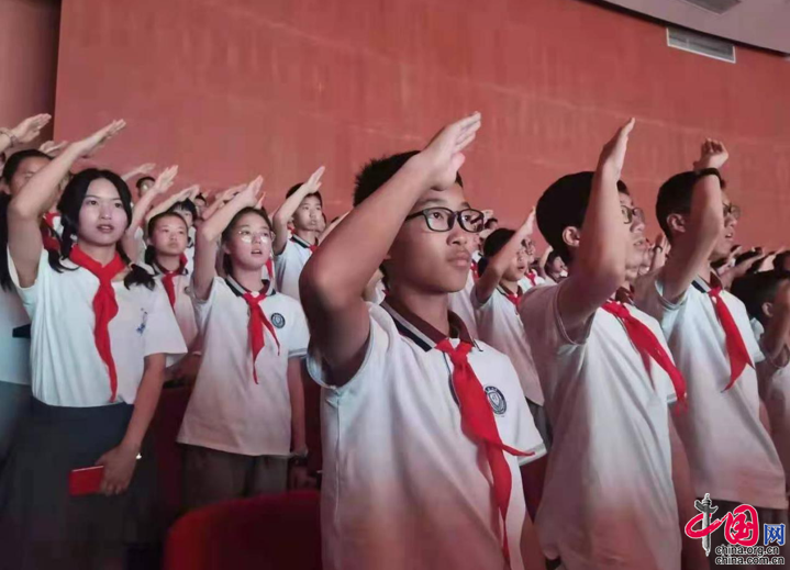 离队仪式,执礼学子与这面陪伴八年之久的少先队队旗告别,面向光荣的少先队队旗最后行一次少先队礼。“曾经一绕、一叠、一拉,我戴上红领巾,成为了少先队员;如今,我小心翼翼脱下红领巾,叠放在锦盒里,往事如电影般在脑海里回放……自此之后,我不再是儿童,我已经成长为有担当的青年!”