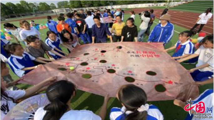 中国网6月9日讯(刘杨)追寻红色历史足迹,激发青少年的爱国热情,传承革命先辈的优良品质和长征精神。6月8日,四川天府新区合江中学举办了以“重走长征路 传承民族魂”为主题的班会活动。班会邀请了班级党员爸妈共同参与,与孩子一起,回顾党的峥嵘岁月、重温的党不凡历程。