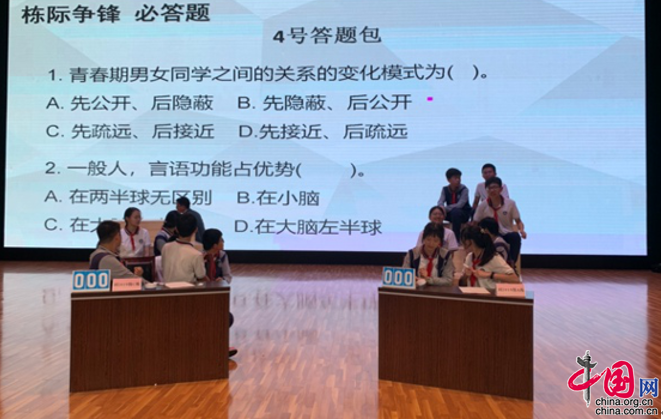 5月25日,心理知识竞赛,为进一步提高学生心理常识储备,普及心理调适能力,学校举行首场心理知识竞赛。初2020级、初2019级和高2020级全体学生采用考试的形式进行初赛,角逐决赛名额。比赛分为两轮角逐出优胜班级,争夺“金心奖”、“银心奖”、“铜心奖”。学校相关负责人表示,比赛有输赢,知识无高低,心理知识竞赛为所有对心理学感到陌生的同学打开了一扇窗,关爱自己,从尊重科学,了解常识开始。