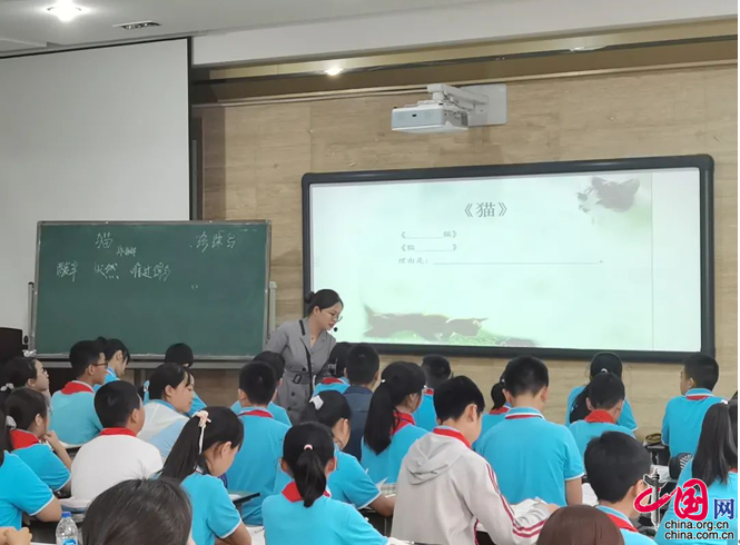 中国网6月11日讯(刘杨)进一步提升学生高阶思维能力,由点到线地统筹整合一到九年级全学段课程,开展衔接教育,实现小初平稳、高效地过渡。6月10日,成都市青羊区督学、小学语文教研员陈涛组织全区五年级语文教师,在石室联合中学蜀华分校开展“学语言就是学思维”课堂教学展评活动。