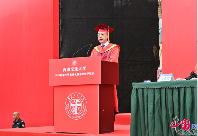 以下为西南交通大学校长杨丹在西南交通大学2021届学生毕业典礼暨学位授予仪式上的讲话全文——