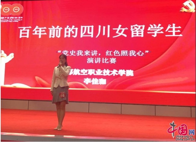 本次比赛共有来自全省86所高校的168人参加,经过专业老师评审,最终评选出20个作品进入现场决赛。成都航院相关负责人介绍,学校高度重视此次党史演讲比赛,自活动开始以来,积极在校内挖掘和培养优秀选手,推选出两个作品报送四川省教育工委参与省级比赛,最终民航运输学院学生李佳珈的演讲作品《百年前的四川留学生》入围决赛。该作品讲述了四川第一批留法女学生张振华为继承和发扬祖国科教事业耗尽心血的一生,描绘了中国女性在反侵略、求民主的革命实践中,以“巾帼不让须眉”的气魄和胆识,在反帝爱国运动的激流中冲锋陷阵、拼搏奋斗。决赛现场,李佳珈的演讲一气呵成,情感跌宕起伏,得到现场评委和观众的一致好评。