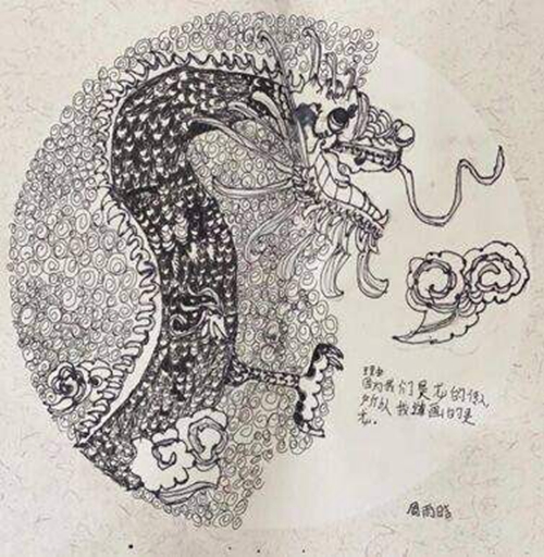 《中国人为什么是龙的传人》一课中,孩子们自主创作的龙图腾