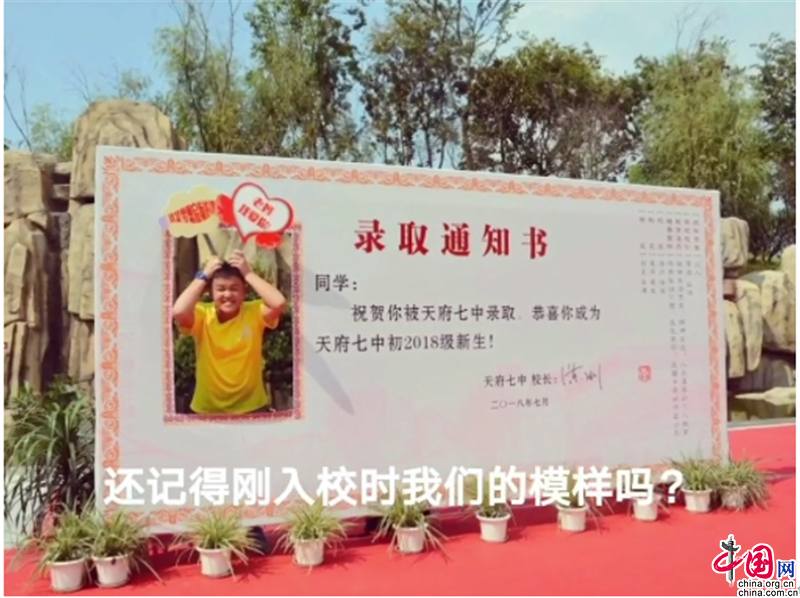 青春,是一曲荡气回肠的歌。三年前,执信学子怀着彩色梦想走进了天府七中,三年中,他们有过欢笑,流过泪水,经历磨炼,得到成长。在天七这片沃土上,他们逐渐褪去青涩,他们承载了太多的祝福与惦念、关怀与企盼,藏匿了太多的故事与细节。毕业典礼上,同学们跟随短片回望了属于初2018级执信人的天七故事。