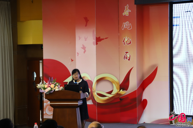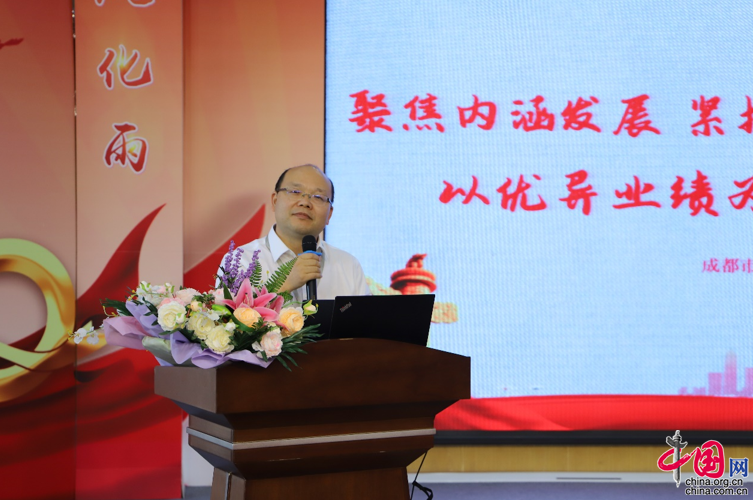 “2021年是中国共产党建党100周年,是‘十四五’规划开局之年,是开启全面建设社会主义现代化国家新征程的关键之年,也是我校跨入示范校后追赶式发展的第一年。”该校副校长李玉英以“聚焦内涵发展紧扣素养提升 深化五育融合 以优异业绩为建党百年华诞献礼”为主题,总结承载着一个学期以来学校教育教学工作的点点滴滴,“紧扣时代脉搏,全面把握党的育人方向;紧扣素养提升,全面推进学校高质量发展;紧扣五育融合,全面提升学生综合能力……” 她围绕“三个紧扣”“三个全面”提升该校内涵发展进行了总结,“2021年是中国共产党成立100周年,站在‘两个百年’交汇点,学校将结合党史学习教育,用‘爱慧教育’品牌助力成都‘公园城市’建设,为成华‘成于中优 华在文商’强区工程作出新贡献,同心协力培育‘身心健康、兴趣宽泛、情感丰富、学思俱佳’的现代儿童。”