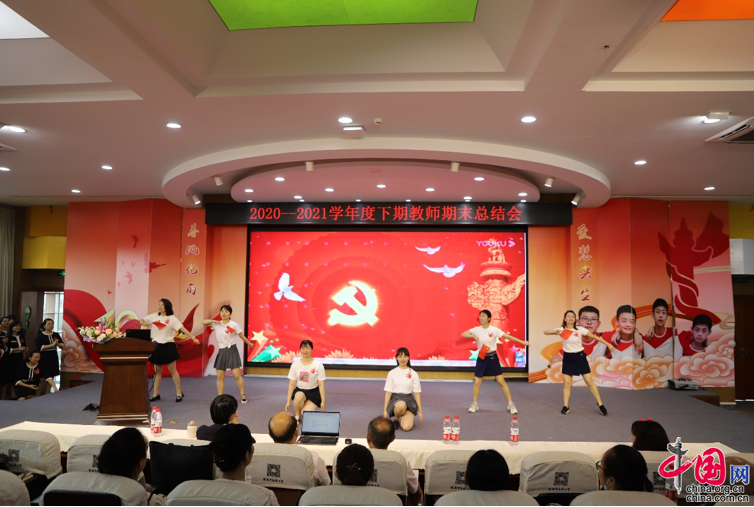 “我还是从前那个少年,没有一丝丝改变,时间只不过是考验,种在心中丝毫为减,把我们百年梦想去实现……”当日的总结会在该校老师及部分学生代表们带来的舞蹈《少年》中拉开序幕,在台上师生们轻松活泼的舞姿中,该校全体教师回首着过去一学期自己在本职岗位上发光发热取得的辉煌成绩。