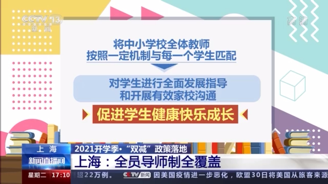 新学期,在已有试点基础上,上海还将在全市中小学重点年级推行全员导师制。将中小学校全体教师按照一定机制与每一个学生匹配,对学生进行全面发展指导和开展有效家校沟通,促进学生健康快乐成长。学校可根据办学规模、师生比、师资结构等实际情况,自主确定导师与学生的匹配方式和配置比例,每位导师与学生之间的配置比例原则上不超过1∶15。