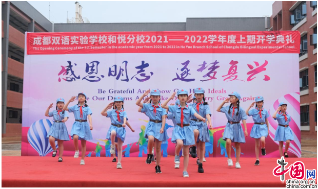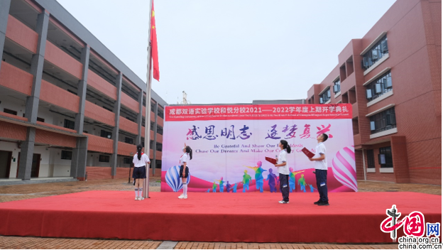 中国网9月2日讯(王李科)校外,孩子们和家长挥手作别,宣布跟假期以及旧的自己作别;校内,迎着朝阳,孩子们迎来了充满希望的新学期。新的学期孕育出新的希望和憧憬,沉寂了一个暑假的成都市双语实验学校(主校区)及和悦分校校园恢复了往日的青春和朝气。9月1日上午,成都双语实验学校/和悦分校开展了以“感恩明志,逐梦复兴”为主题的2021-2022年度上期开学典礼,成都双语实验学校/和悦分校(以下简称双语)相关负责参加典礼,与该校师生一起展望美好新学期。