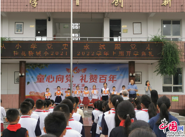 秋风送爽,丹桂飘香。峨眉山市桂花桥镇小学校全体师生欢聚在芬芳的校园,迎来了新一学期的开学典礼。校长刘成章送给孩子们一首桂花诗,希望桂花学子们以小小的桂花为榜样,做到“博学、体健、崇真、尚美、志远”,争当具有“五显品质,桂花精神”的致真少年,志存高远,香飘万家;全体同学用铿锵有力的语言重温了《少年中国说》中的内容。此外,学校还对上一学年度表现优秀的学生颁发了奖状;安保主任李明生就新学期的疫情防控、交通安全、食品安全等作了具体要求,希望全体同学能平安、快乐的度过本学期。