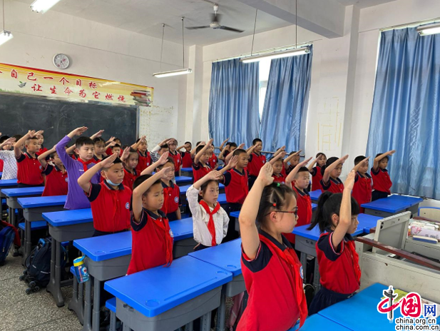 伴随着雄壮的国歌声,五星红旗冉冉升起,乐山市县街小学开学典礼拉开序幕。副校长罗旸为全校师生带来新学期寄语;五年级7班学生易佳琪代表全校学生分享了自己的假期收获、新学期的打算,并鼓励全体县小伙伴用行动践行“和乐焕雅趣,仰圣润良习”;在少先队大队长的带领下,全体学子高举右拳,庄严宣誓,立志铭誓遵规守纪、奋发有为。此外,各班在班主任老师的组织下还进行了开学第一课。