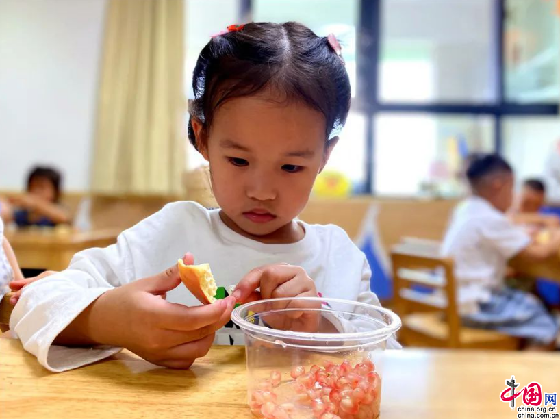 中国网9月28日讯(宋得恩)温暖的秋日里,一颗石榴树闯进了七宝的视野,于是一场关于石榴的有趣活动扑面而来。“桃李芬芳去,石榴正当时。”成都市武侯区第七幼儿园的石榴熟啦!“要创设丰富的教育环境,合理安排一日活动,最大限度地支持和满足幼儿通过感知、实际操作和亲身体验获取经验的需要。”基于这样的理念,武侯七幼从孩子的兴趣入手,开启了“石榴熟了的故事”。