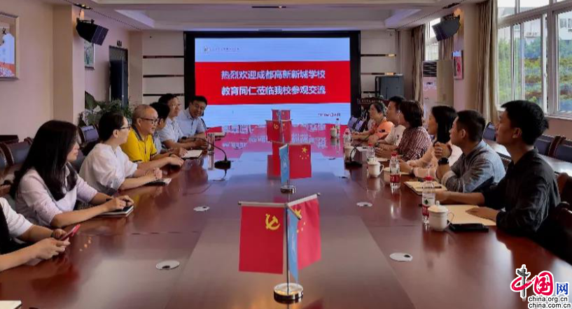中国网9月28日讯(黄梅兰)为加强两校之间的互动交流,实现学校之间的互补,提高教学管理水平。9月26日,成都高新新城学校校长杨群等走进成都石室双楠实验学校参观交流。