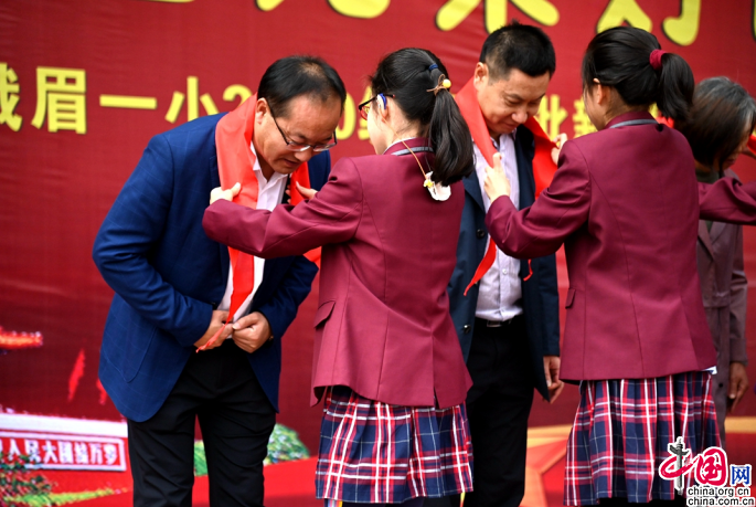 中国网10月15日讯 10月13日,峨眉山市第一小学举行了以“红领巾心向党、争当光荣好队员”为主题的2020级第二批少先队员入队仪式活动,343名同学光荣地加入了中国少年先锋队。学校党总支部副书记林茂禄、副校长鞠贞星、副校长江海洋、副校长马作平、学生发展中心主任申丽芳、副主任刘薇薇、副主任马世强参加了本次活动。